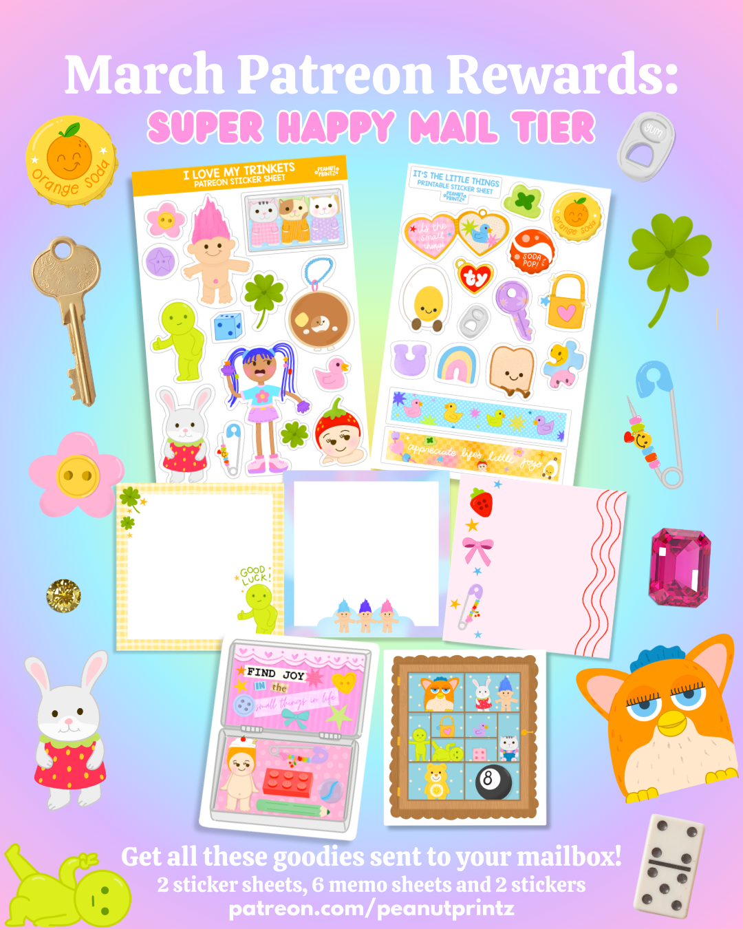 Join my Patreon for exclusive benefits: monthly themed happy mail, digital downloads, discounts, and more rewards!
